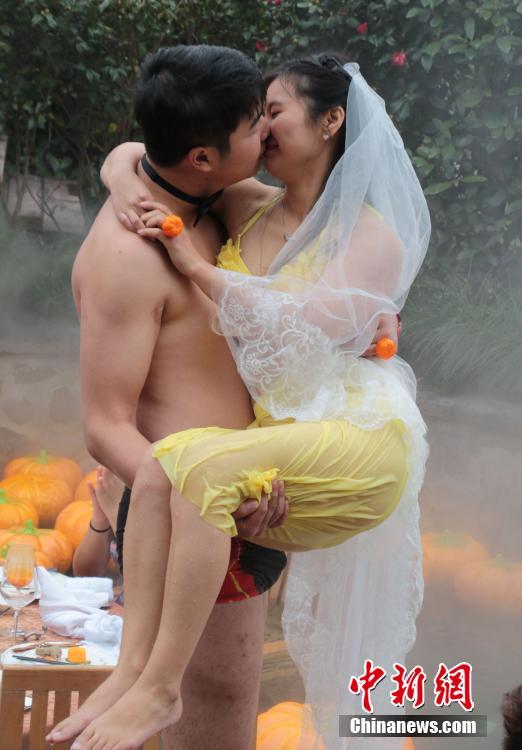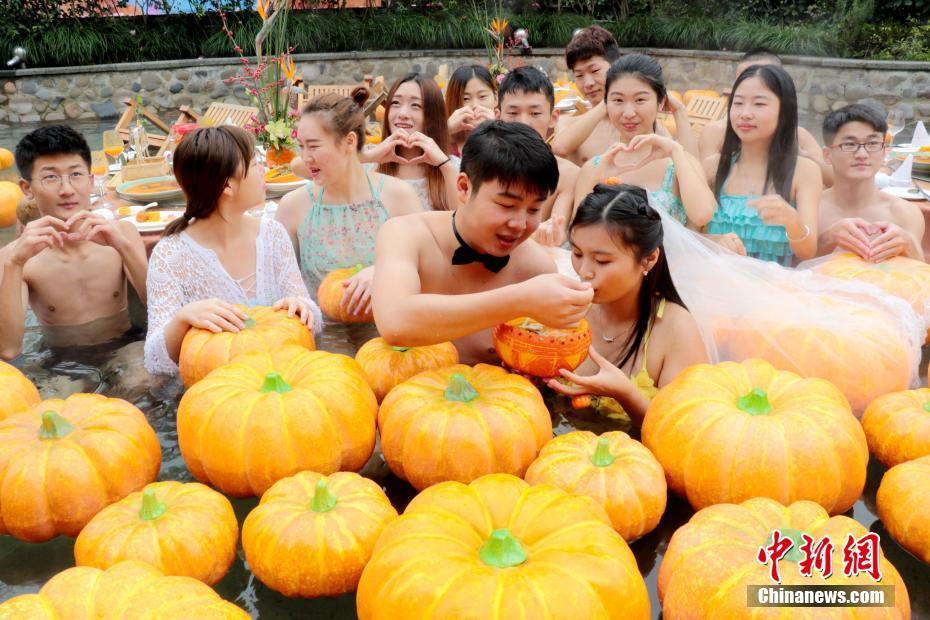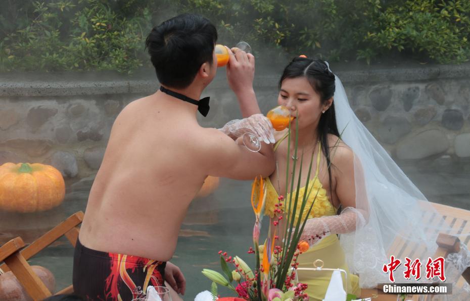 29日、浙江省杭州市で一組の新郎新婦がかぼちゃの裝飾品を浮かべた溫泉で結(jié)婚式を開いた。招待された知人たちは、溫泉につかりながら二人を祝福した。披露宴で出された料理は全てかぼちゃを使用しており、これにより、健康に気を配った結(jié)婚式を提唱している。同市の蕭山區(qū)出身の新郎?周天中さんと新婦?■都(■は女へんに亭)さんの馴れ初めは、宋代文化テーマパークの宋城に遊びに行った時(shí)に知り合ったのがきっかけだ。二人は、同地でとても有意義な結(jié)婚式が開けたと話している。中國新聞網(wǎng)が伝えた。(編集TK)