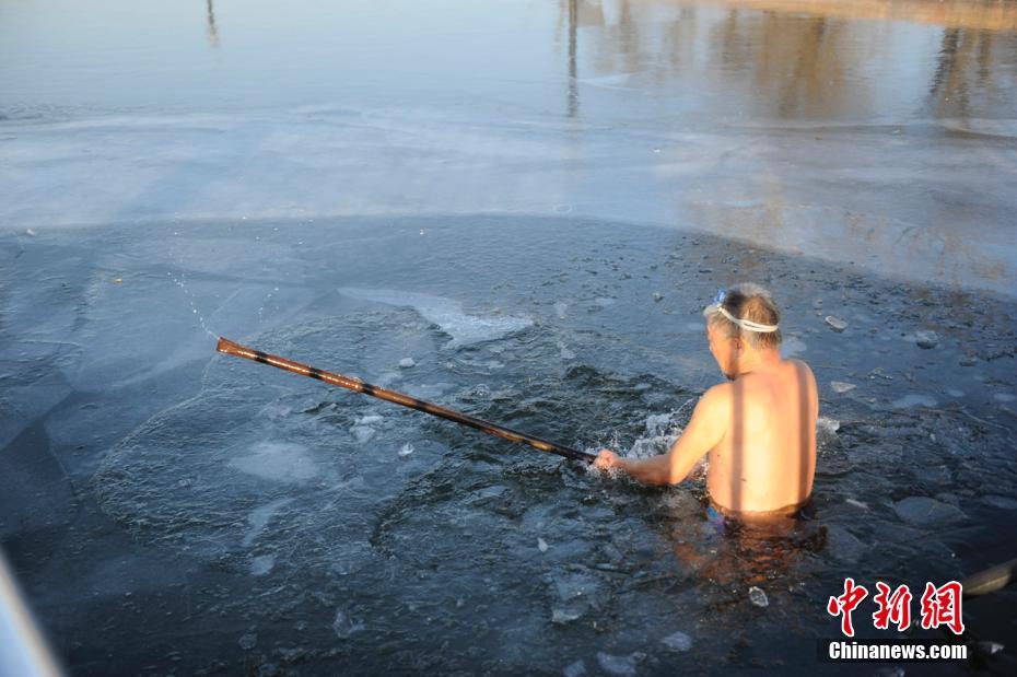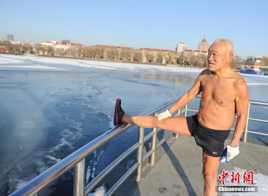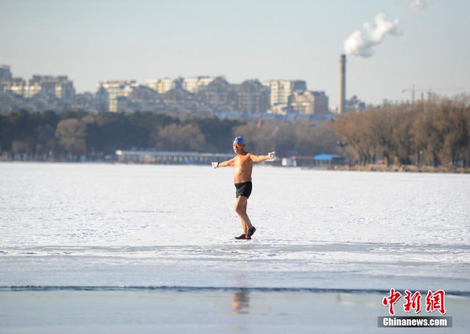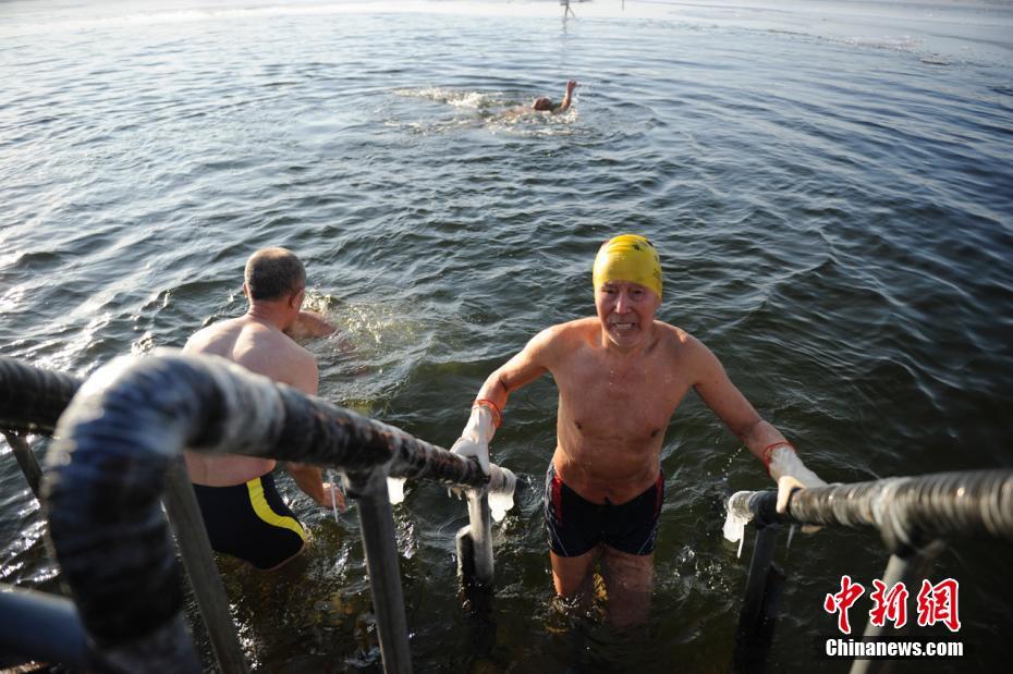 吉林省長春市の南湖公園では、29日、數(shù)名の老人が積もった雪の上を水著でトレーニングし、さらには凍った湖に飛び込み、寒中水泳を始めた。最年少が62歳、最年長が88歳のこの老人たちは、このような冬場のトレーニングを數(shù)十年も続けているという。彼らは、「寒中水泳によって意志力を磨き、丈夫な體を作ることができるため、より多くの若者にも、參加してほしいと思っている」と話した。中國新聞網(wǎng)が伝えた。(編集TK)