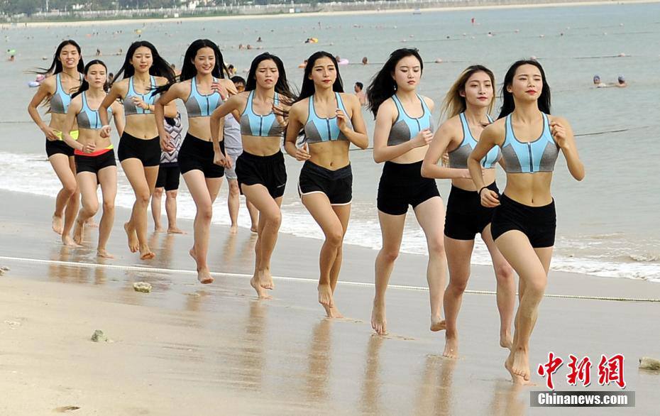 9名の女子大學生によるグループ?成都大學女子全アイドルフィットネスチームのメンバーたちが1日、第6回三亜國際ビーチボディビル?フィットネスビキニコンテストに備え、海南省三亜市でトレーニングを行った。中國新聞網(wǎng)が伝えた。(編集TK)