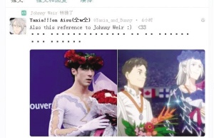 このほか、アニメでは、ヴィクトル?ニキフォロが現(xiàn)役時(shí)代に表彰式で身に著けていた品物にそっくりのものも登場した。米國の有名選手のジョニー?ウィルが某大會(huì)の表彰式でかぶっていた花冠と同じような冠が、アニメにも見られた。