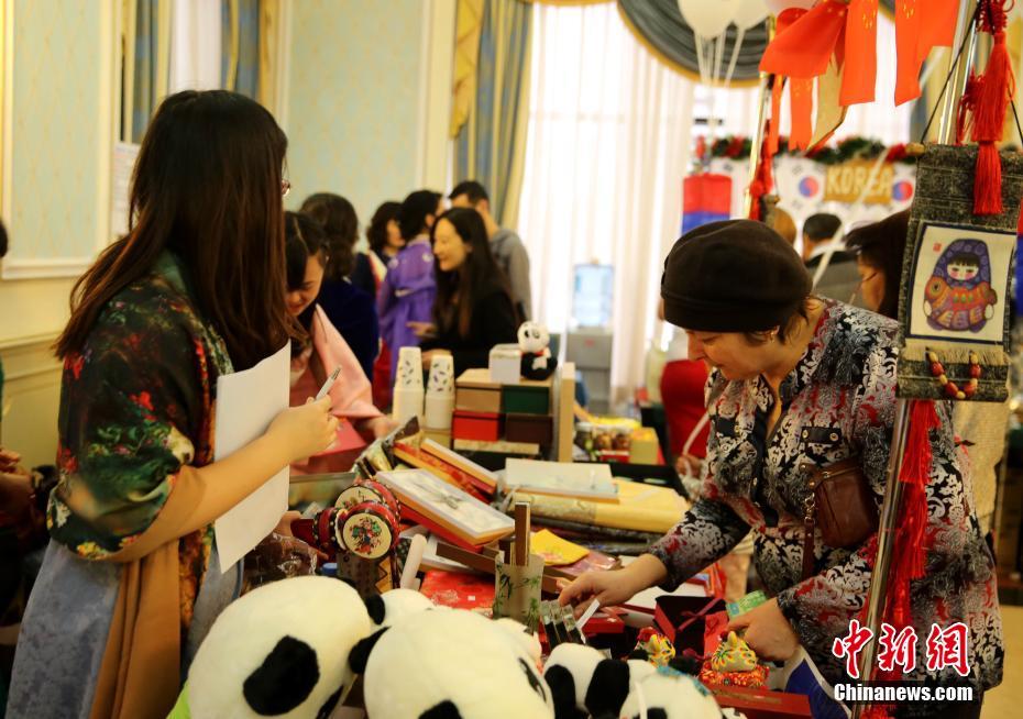 カザフスタンの首都?アスタナで、各國の大使館が4日、チャリティーバザーを開催した。在カザフスタン中國大使館の出店エリアには、中國要素たっぷりの商品が並び、多くの人が足を止めていた。來場者たちは先を爭うようにシルクや陶磁器、扇子、パンダのぬいぐるみなどの商品の値段をチェックしていた。中國新聞網(wǎng)が伝えた。(編集YK)