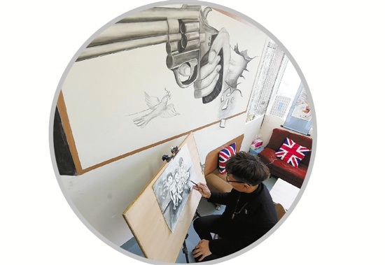 陳さんは同學院のアートデザイン學科を?qū)煿イ工氪髮W1年生。彼は高校3年生の夏休みには自分のアトリエを開くほどの経験豊かなストリートアート(壁畫)畫家だ。(編集TK)