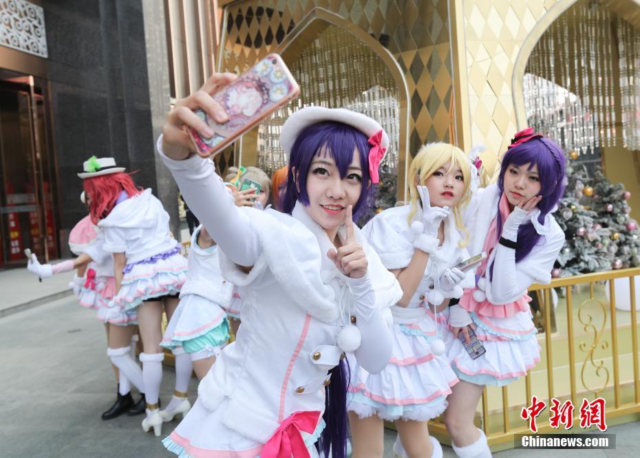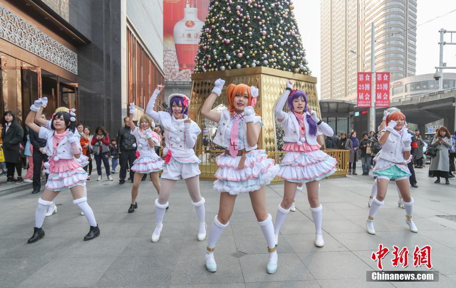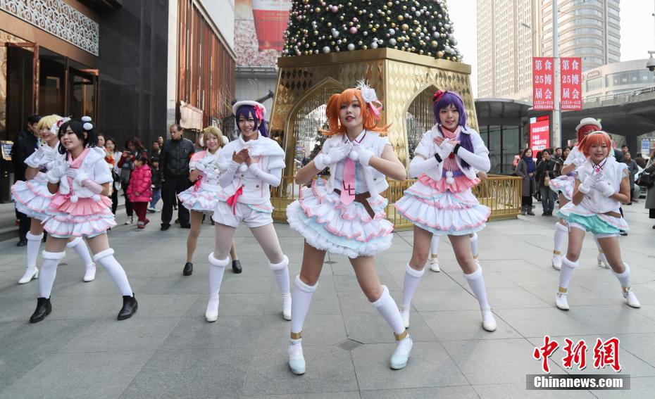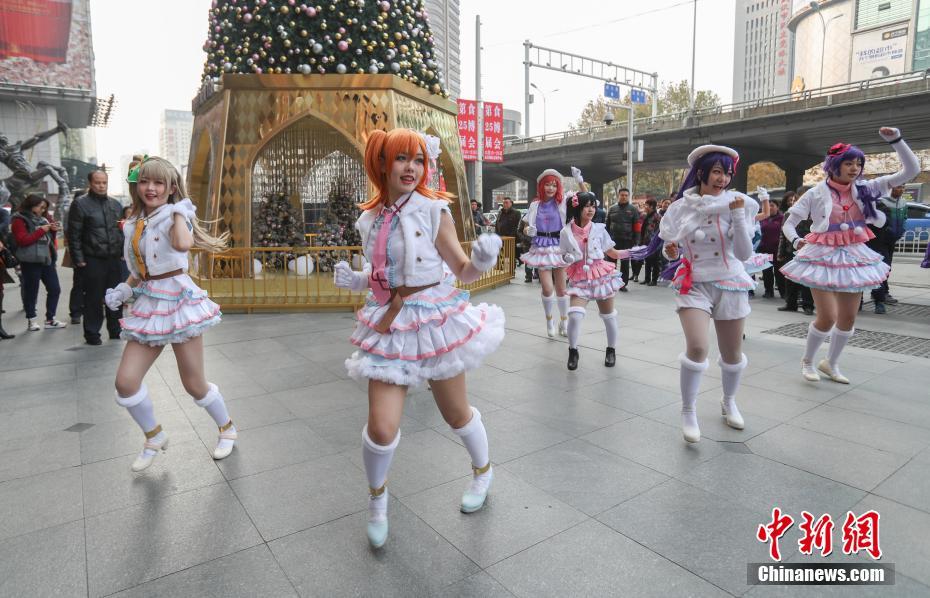 湖北省武漢市の武商広場の入口付近で10日、有名なコスプレグループの「波利花菜園」に所屬する9人の「00後(2000年代生まれ)」の美少女たちがアニメ?マンガファンから人気の高いキャラクターのコスプレをして、歌とダンスを披露した。彼女たちのパフォーマンスに多くの人たちが足を止めていた。中國新聞網(wǎng)が伝えた。(編集YK)