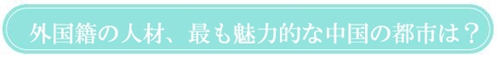 「國(guó)際人材交流」誌と中國(guó)國(guó)際人材交流?開(kāi)発研究會(huì)がこのほど共同で発表した調(diào)査によると、上海が政務(wù)環(huán)境、政策環(huán)境、仕事環(huán)境、生活環(huán)境の4つの一級(jí)指標(biāo)でそれぞれランキング1位を獲得した。上海市は6年間で4回目の「外國(guó)籍の人材にとって最も魅力的な中國(guó)の都市」となった。上海のほか、北京、杭州、深セン、天津、青島、蘇州、広州、廈門(mén)、済南の9都市が最も魅力的な都市に入っている。>>詳細(xì)へ