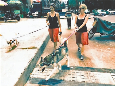 成都で外國(guó)人女性3人がイヌの散歩代行ビジネス始める