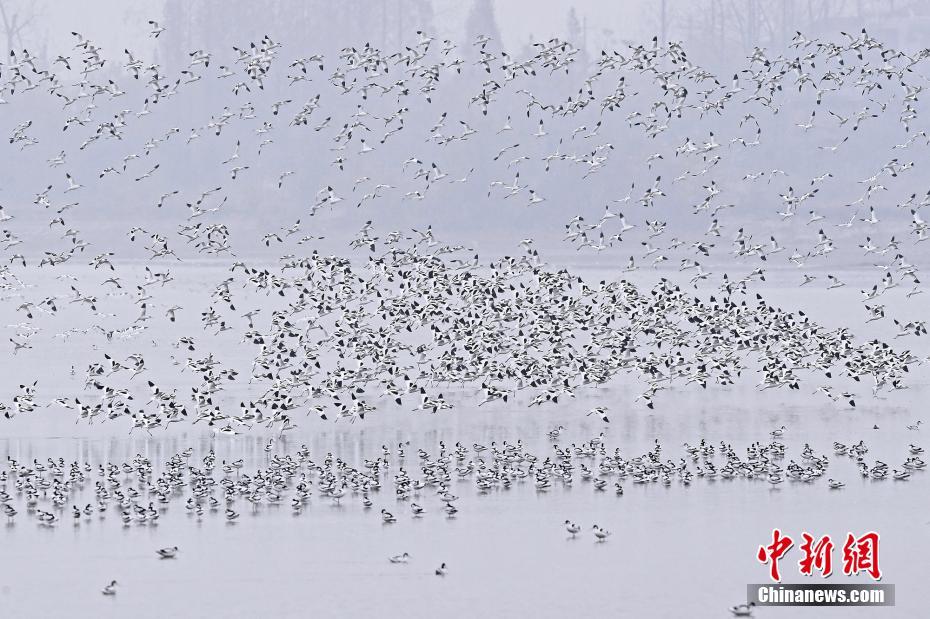 このほど、湖南省の東洞庭湖國(guó)家級(jí)自然保護(hù)區(qū)では渡り鳥のソリハシセイタカシギが群をなして湖の上を旋回していた。同保護(hù)區(qū)で観測(cè)されたデータによると、2016年11月末までに、長(zhǎng)江両岸の湖南省の東洞庭湖と湖北省の洪湖には數(shù)萬(wàn)羽にのぼるソリハシセイタカシギが越冬するため次々と姿を現(xiàn)しているという。中國(guó)新聞網(wǎng)が伝えた。(編集YK)
