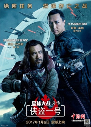 ルーカスフィルム社が製作し、ウォルト?ディズニー?スタジオ?モーション?ピクチャーズが配給した映畫「ローグ?ワン/スター?ウォーズ?ストーリー」は今月16日に北米で封切りと同時に世界で公開されると、1週間の興行収入が3億ドル(約352億円)に達(dá)し、大評判だ。出演者への評価をみると、2人の中國人俳優(yōu)の甄子丹と姜文が冴えた演技で好評を博している。中國新聞網(wǎng)が伝えた。