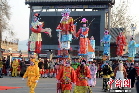 承徳伝統(tǒng)の「背桿」(背中の棒に人を乗せるパフォーマンス)(撮影?張帆)。