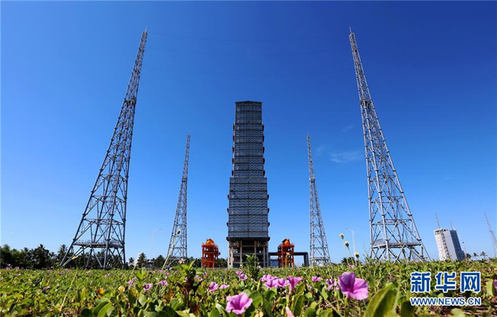 海南文昌衛(wèi)星発射場の「長征7號」キャリアロケットを固定する発射塔