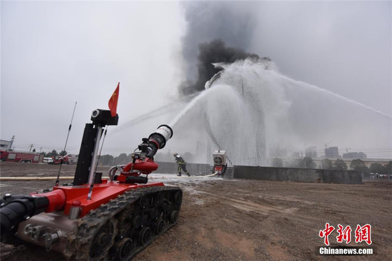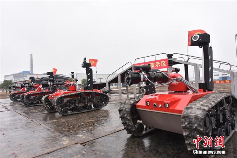 湖北省大冶市のある工場(chǎng)內(nèi)で12日行われた化工タンク消火訓(xùn)練に対爆消防消火偵察ロボットと高倍數(shù)泡消火ロボットが登場(chǎng)した。これらの消火ロボットは対爆、防水、障害物突破の機(jī)能を持ち、さらにガス測(cè)定裝置、マイク、高畫(huà)質(zhì)カメラ、赤外線スコープ、火元探査裝置、サーモグラフィーなど複數(shù)の偵察設(shè)備を搭載。消防士に代わり火災(zāi)現(xiàn)場(chǎng)の建物內(nèi)部まで進(jìn)入し、現(xiàn)場(chǎng)の偵察、捜索救助、消火活動(dòng)を行うことができる。中國(guó)新聞網(wǎng)が伝えた。(編集YF)