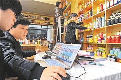 浙江省商務(wù)庁がまとめた最新の統(tǒng)計によると、同省の2016年のインターネット小売額は1兆306億7400萬元(1元は約16.5円)に上り、前年比35.43%増加した。省內(nèi)の個人によるネット消費(fèi)額は5251億6900萬元で同30.89%増加し、ネット小売の黒字額は5055億500萬元に達(dá)した。寫真は同省義烏市青巖劉村にある通信販売會社で、社員たちが忙しく働く様子。(編集KS)