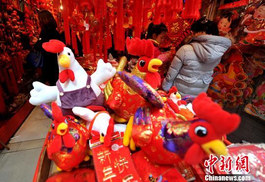 福州では、さまざまなトリの飾りが店の一番目立つ場所に置かれていた。舊暦の酉年の春節(jié)が近づき、トリをモチーフにした各種の裝飾品が好調(diào)な売り上げだ。