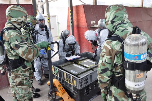 廃棄する遺棄化學兵器を引き渡す中日両國の作業(yè)員(寫真提供:國防部ウェブサイト)。