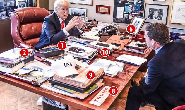 今週の金曜日(北京時(shí)間の土曜日)、いよいよ米國不動(dòng)産王ドナルド?トランプ氏が正式に「第45代米國大統(tǒng)領(lǐng)」に就任する。まだホワイトハウス入りはしていないものの、すでに多くのメディアがトランプ氏が保有する商業(yè)ビル「トランプ?タワー」のオフィスを見學(xué)し、トランプ氏のオフィスのレイアウトの秘密をうかがい知ろうとしている。英國「デイリーメール」紙は17日、トランプ氏のデスク上に置かれたものを詳しく解説した。デスクの上は「物が溢れている」だけではなく、內(nèi)容もすさまじかった。環(huán)球網(wǎng)が伝えた。(編集TK)