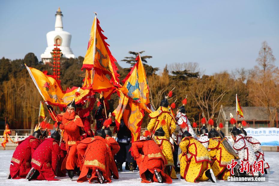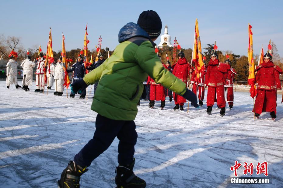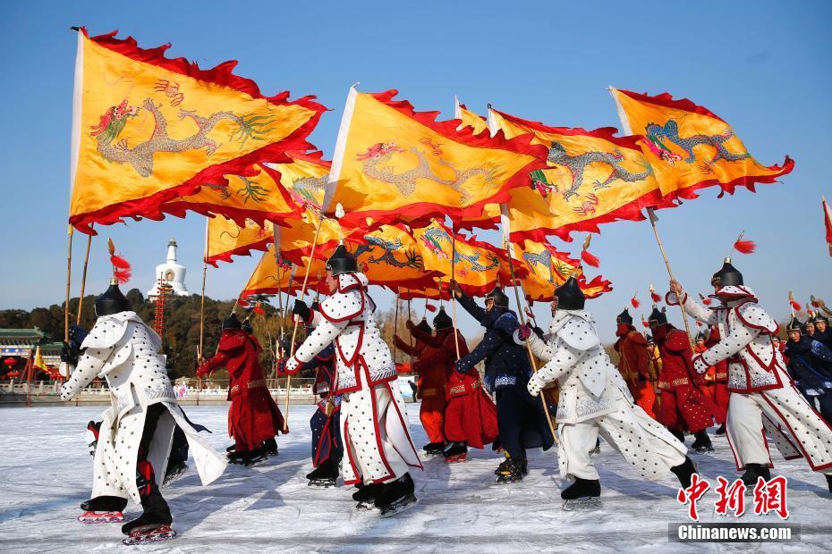 清代に組織された軍事組織「八旗」の衣裝を著た出演者たちが北京の北海公園で23日、「氷嬉」のパフォーマンスを行った?!笟赕摇工蟿e名「氷戯」ともいい、古くから存在する文化的なイベントで、體を鍛えるスポーツと伝統(tǒng)文化の要素を融合させたイベントとなっている?!笟赕摇工锨宕肆餍肖贰澳甓摔稀赴似臁工伪?duì)が冬至から「三九(冬至から9日間ずつ數(shù)えて3番目の9日間)」にかけてスケートをしたのだという。中國新聞網(wǎng)が伝えた。(編集YK)