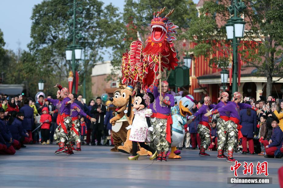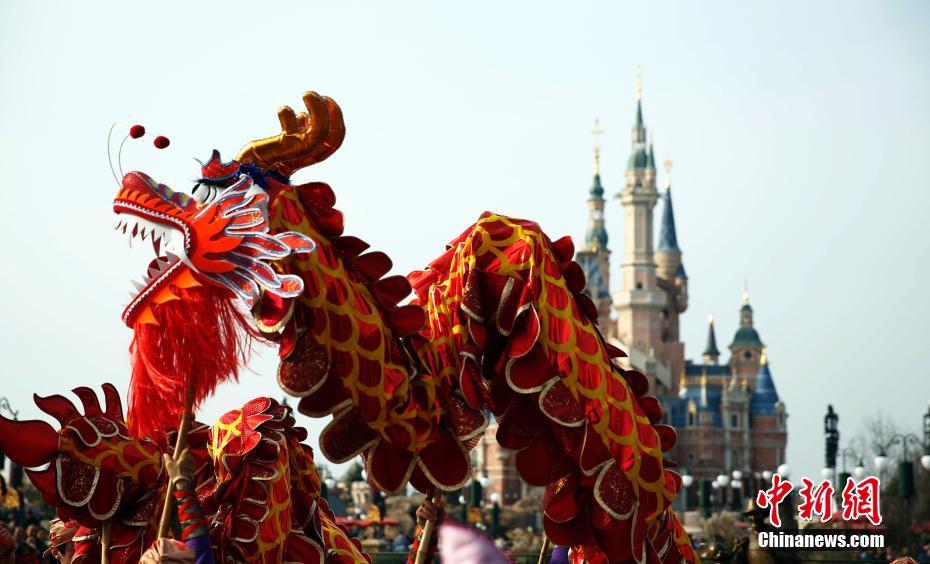 上海ディズニーランドで24日から披露されている賑やかな竜舞パレードが來(lái)園者たちの注目を集めている。ミッキーマウスとその仲間たちが竜舞で中國(guó)の舊正月の到來(lái)を祝福している。中國(guó)新聞網(wǎng)が伝えた。(編集TK)