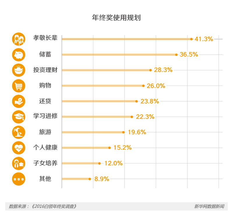 冬のボーナスを使って「自分にご褒美」をあげるだけでなく、両親に感謝を示すために使う人も多い。冬のボーナスの使い道をホワイトカラーに聞いたところ、最も多かったのが「親孝行」で4割以上。次に多かったのは「貯金」だった。
