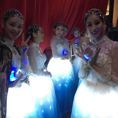 「満城煙花」の効果を出すため、現(xiàn)場(chǎng)では3チーム?50機(jī)の、ポケットに入るほど小さいサイズのドローンが出動(dòng)した。第1チームは20機(jī)で、軽やかに舞臺(tái)の中央を舞い、塔を形作った。これらのドローンに取り付けられているライトが赤と緑の光を放つこともできる。正確な測(cè)位?編隊(duì)飛行アルゴリズムにより、これらのドローンは「DNA螺旋狀構(gòu)造」など一連の難易度が高い艦隊(duì)飛行?ダンスを行い、完璧な効果を発揮した。殘りの30機(jī)はおめでたい赤の「燈籠」を吊り下げながらそれぞれ2組に分かれ、舞臺(tái)両側(cè)でバックダンサーになった。