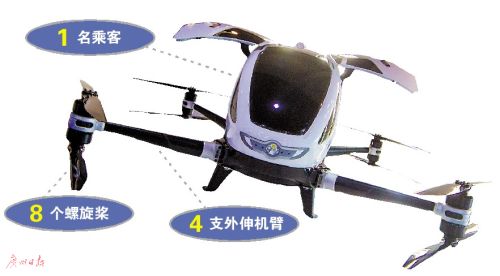 この機種の名前「184」は、乗客1人、8ローター、4アームを意味する。ドバイ交通局は12-14日に開催された第5回世界政府サミットで同機を展示し、多くの見學者を集め、メディアから注目された。「中國のテスラ」とも呼ばれている。