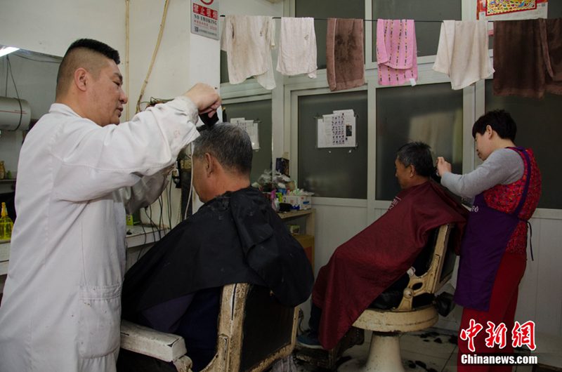 この理髪店は1990年頃にこの胡同にオープンした。店主の王建さんは自分と妻の名前から1文字ずつとって、「蘭建理髪店」と名付けた。蘭建理髪店は毎朝8時過ぎに開店し、夜9時に閉店する。長年店を経営しているが、理髪代はほとんど開店當(dāng)時のままだ。一番安いので7~8元(約130円)となっており、その利益は決して多くない。