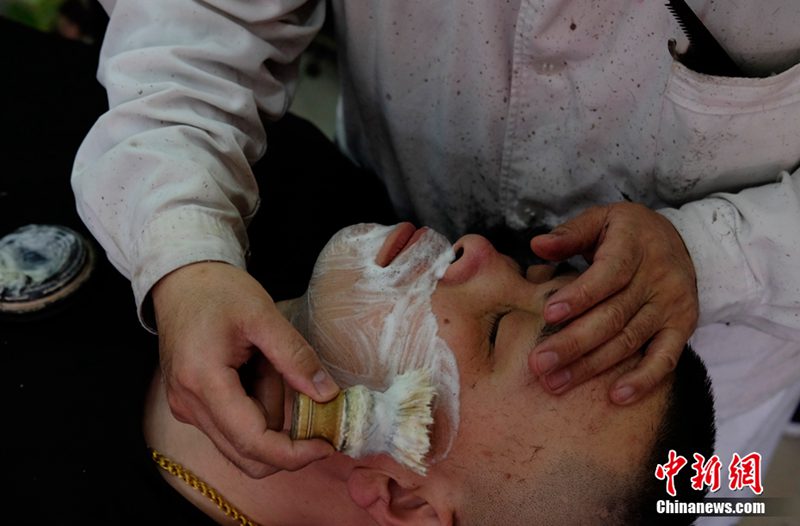 王建さんはある客のヒゲを剃っていたが、店を開いてから長いため、常連客の理髪に関する要求は「以心伝心」で通じ合うことができるのだと言う。店內(nèi)の慌ただしくなく、かと言ってゆっくり過ぎもしない丁度良い時間の進(jìn)み方は人々に忙しない都市?北京にいることを一時忘れさせてくれる。(編集TK)