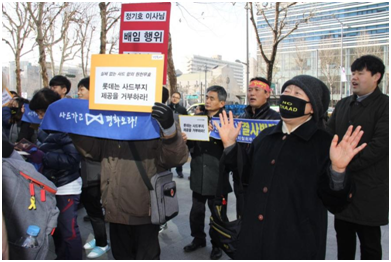 韓國ロッテ本社でTHAAD配備に反対する韓國民。(撮影:人民日報(bào)記者?馬菲)