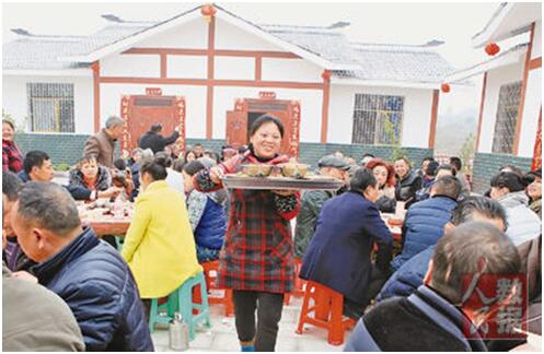 中國(guó)の農(nóng)暦の新年をひかえたある日、四川省広安市のある村の15世帯の貧困家庭がいっせいに新たな住居に移住した。寫真は、移住者らが自ら設(shè)けた宴席の様子。寫真出典:人民日?qǐng)?bào)