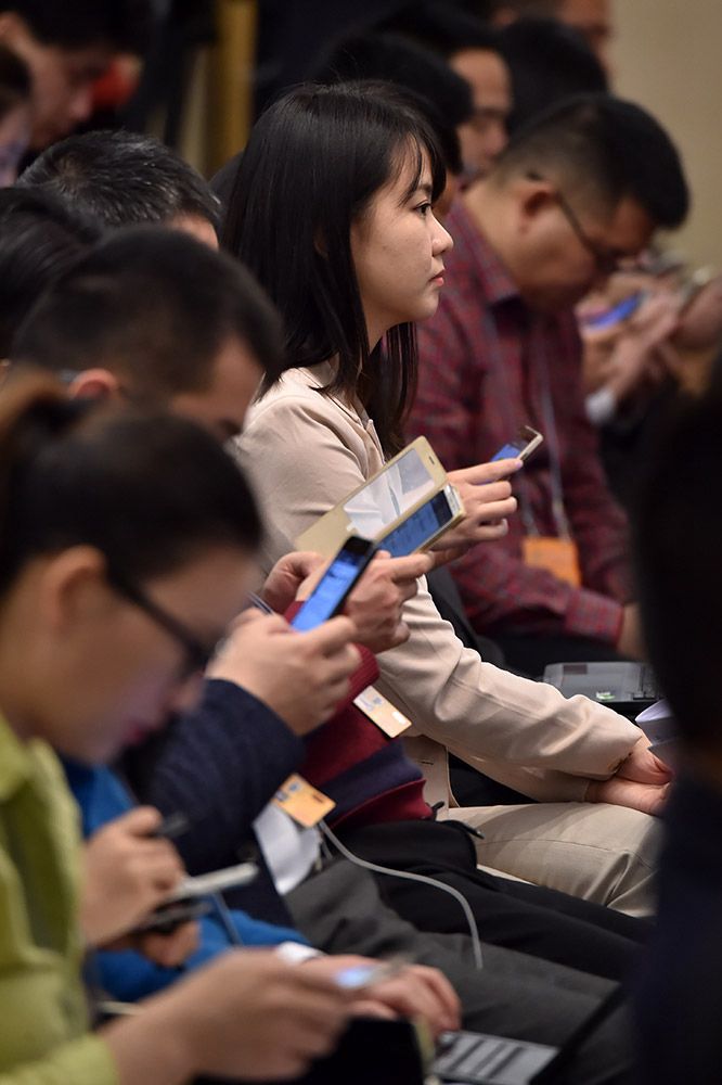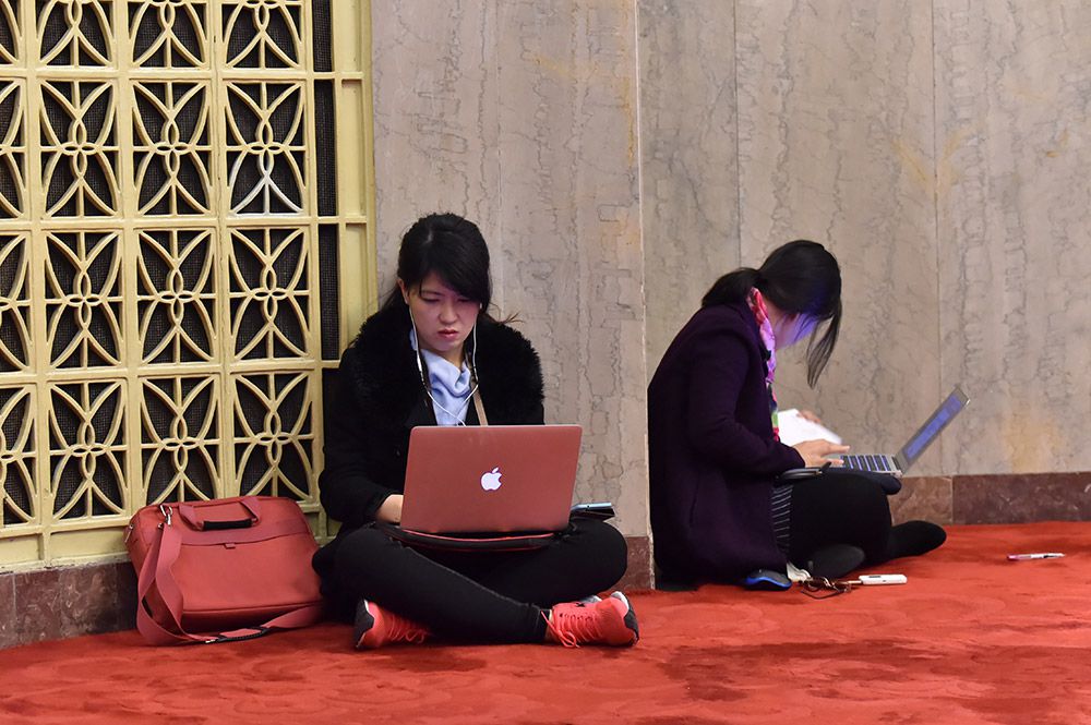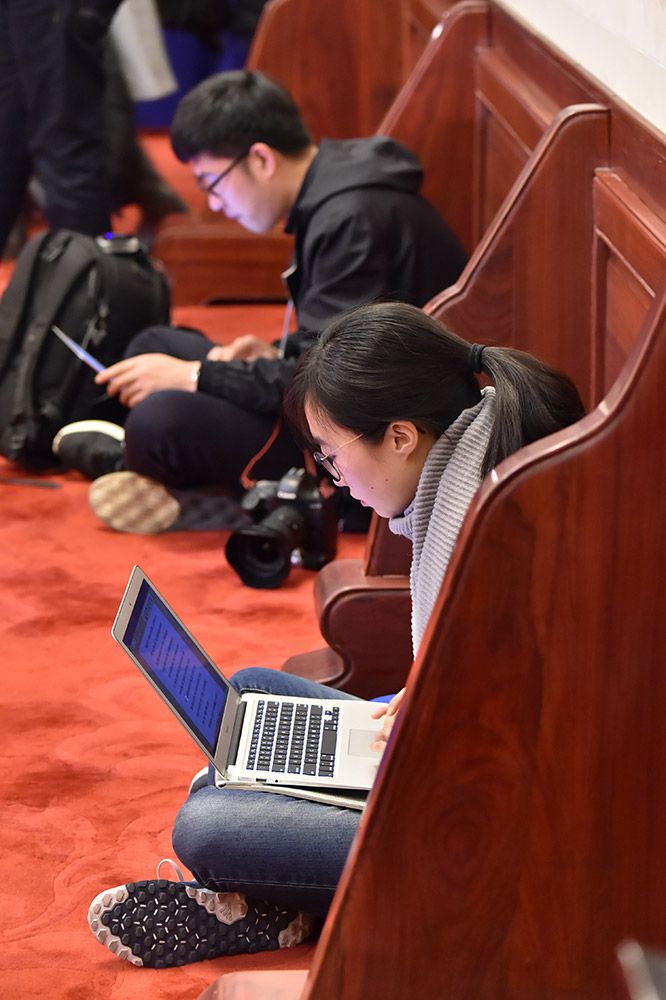全國両會(全國人民代表大會?全國人民政治協(xié)商會議)の會場では、4日、女性記者たちが、1分1秒を爭う勢いで、原稿記事を作成していた。人民網(wǎng)が伝えた。(編集TK)