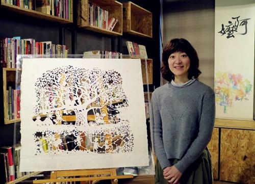 ペイパークラフトアーティストの林文貞さんが「阿■の家 平和と女性人権館」のために製作した作品「おばあちゃんの命の木」。
