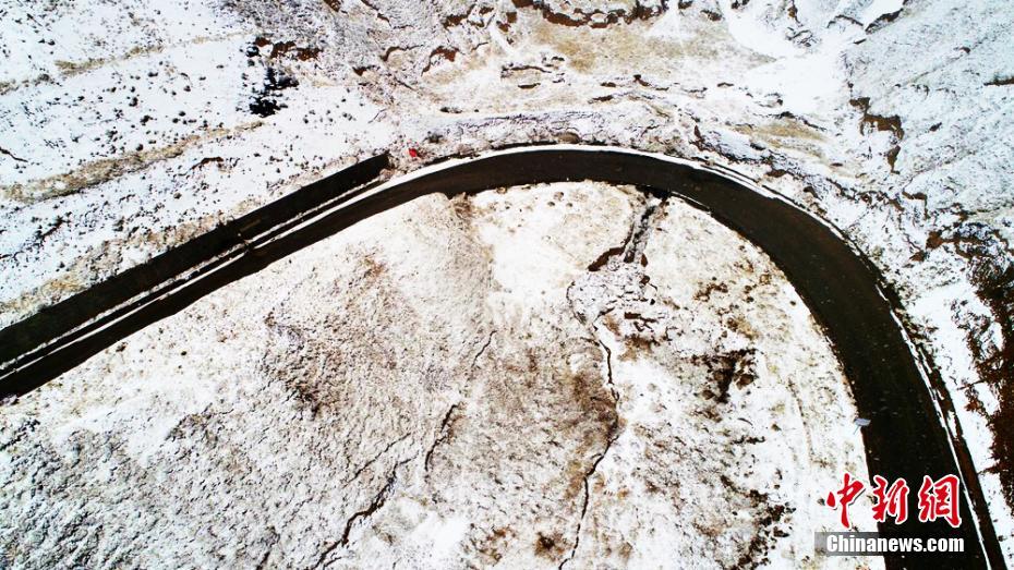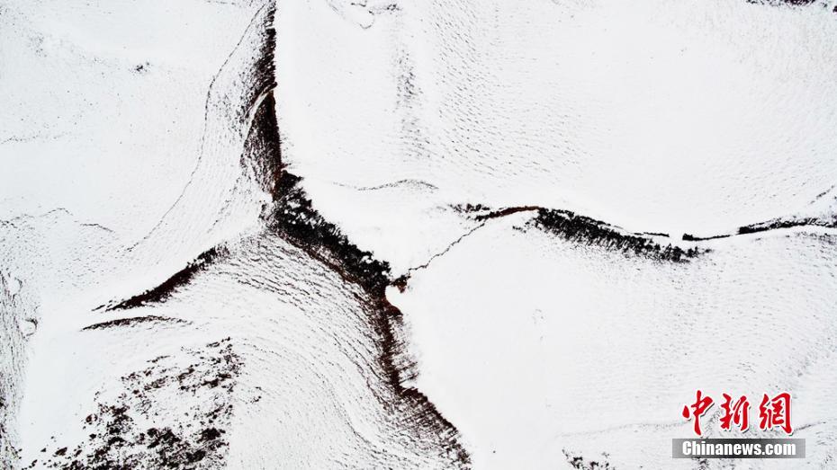 上空から俯瞰した甘粛省皐蘭県の黃土高原の雪景色。北國ならではの美しさと風(fēng)格が広がっている。中國新聞網(wǎng)が伝えた。(編集TK)