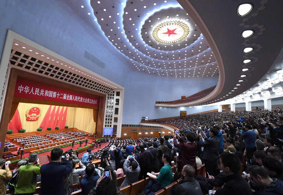 北京の人民大會堂で行われていた第12期全國人民代表大會第5回會議は各議事日程を滯りなく終え、15日午前に閉幕した。人民日報が伝えた。