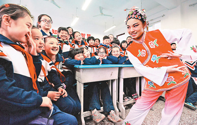 3月24日、演劇を鑑賞する河北省邯鄲市?渚河路小學の子供たち。
