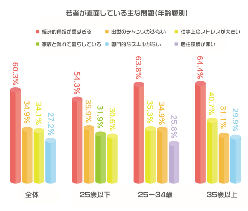 若者は現(xiàn)在、自身のキャリアのスタートを切ったばかりで、貯蓄もまだほとんどない。調査によると、企業(yè)で働く若者の約7割がマイホームを所有していないため、賃貸物件に住んでおり、家賃がその生活費の大きな部分を占めている。また経済面でのプレッシャーが、各年齢層の企業(yè)で働く若者が社會で直面する重圧の主な原因となっている。