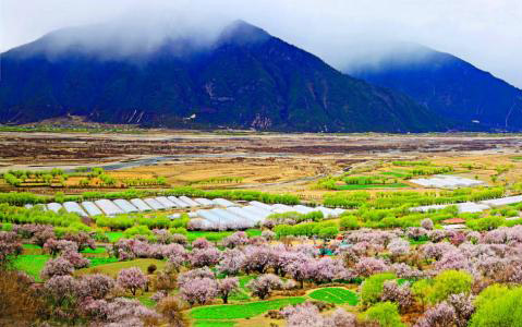 3月、西蔵(チベット)自治區(qū)ニンティにある「桃花溝」は、まだ気溫は低いが、花の海が一面に広がる。遠(yuǎn)くにある峰には真っ白な雪が殘っているが、桃の花はほろ酔い気分の赤い顔のように、互いにその美を競(jìng)い合っている。爽やかな桃の花が、大きな迫力をそなえた雪山の懐に抱かれ、限りない穏やかさを醸し出している。妖艶で美しい桃の花が、紺碧の空を背景に限りない美しさで咲き誇っている。