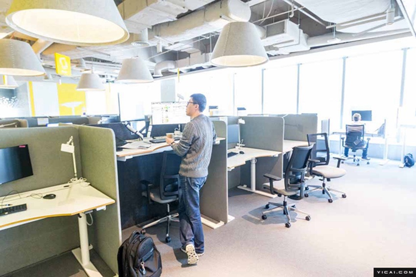 レゴ上海本部では、ほとんどのデスクがスタンディングデスク対応。従業(yè)員は立った狀態(tài)で仕事することが可能。