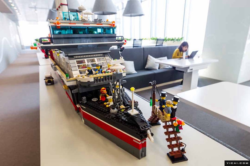 メインオフィスエリアはLEDライトを使用し、いくつかのエリアは午後7時以降は自動的に消燈される。これは省エネのためだけでなく、従業(yè)員に殘業(yè)してほしくないことを示している。また、オフィス內(nèi)のいたるところに、レゴブロックを使った作品が置かれている。