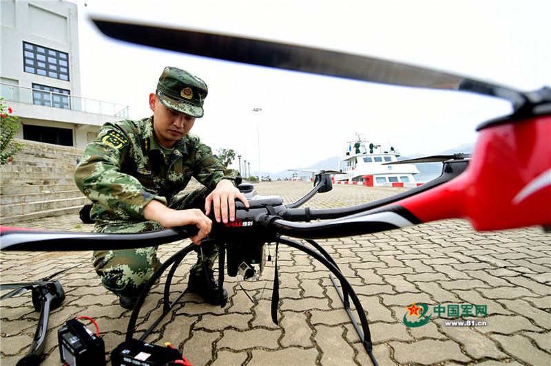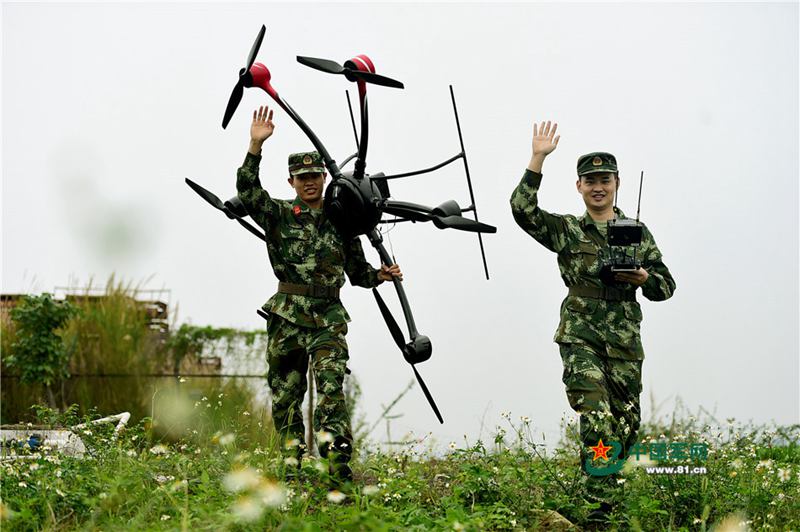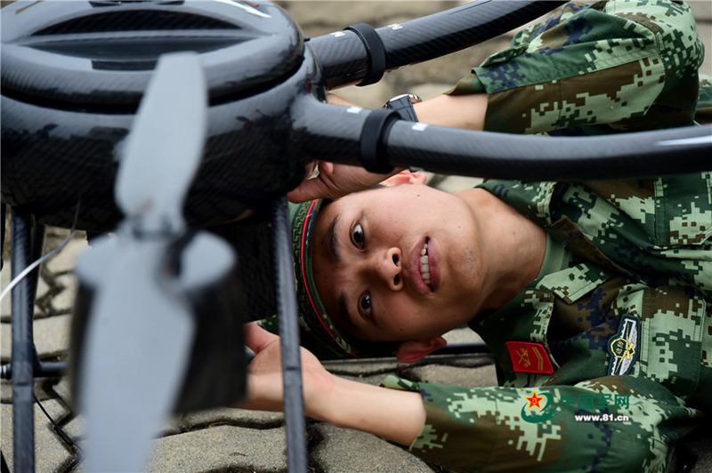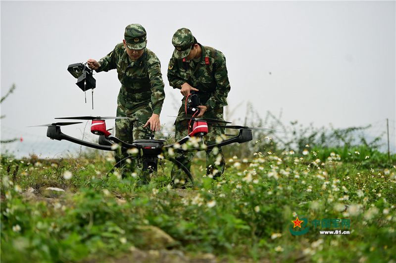 武裝警察広東省國境守備機動隊の「飛手」とはドローン操縦を擔う特殊兵たちだ。27日、同部隊はドローンによる上空偵察、空中停止飛行、空中通信プラットフォームの構築といった訓練を行ない、「飛手」たちが土地勘がない場所での任務遂行能力を鍛えるため、人とドローンの力を融合させた様々な訓練や、緊急時における確固とした通信狀態(tài)を確保する訓練を行った。寫真に寫るバディーは、同部隊情報化科劉聡中尉と呉小海士官。中國軍網(wǎng)が伝えた。(編集TK)
