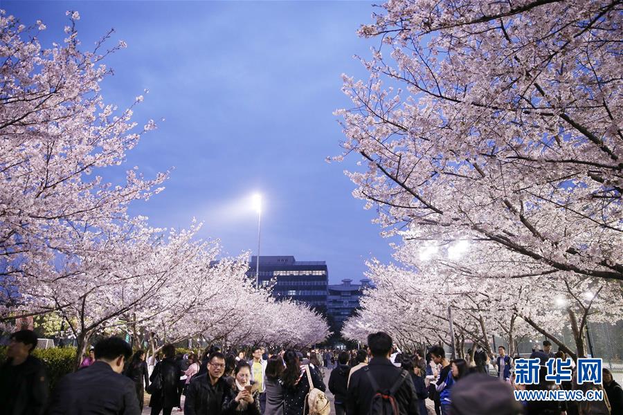 上海同済大學(xué)の「桜通り」の桜が最近見頃を迎えている。夕闇が靜かに舞い降り、ライトアップされた桜はえも言われぬ美しさを湛え、多くの市民や観光客が夜桜鑑賞に訪れていた。新華網(wǎng)が伝えた。(編集TK)