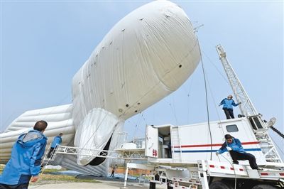 中國電子科技集団公司第三十八研究所は安徽省六安市の試験場內で、係留気球の飛行試験を行った。その外観が「白鯨」のような大型気球が、ゆっくりと空に上がった。人民日報が伝えた。