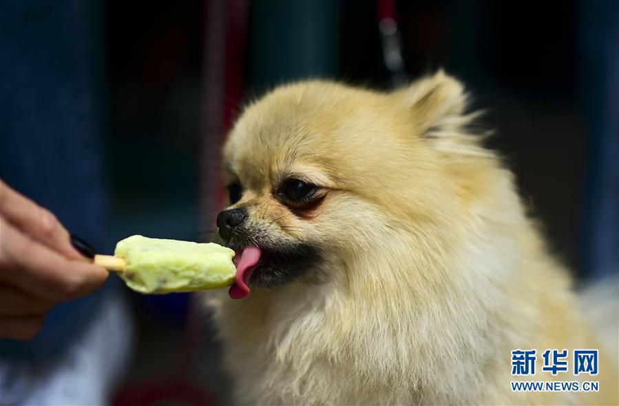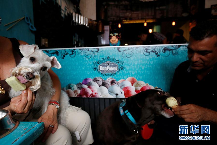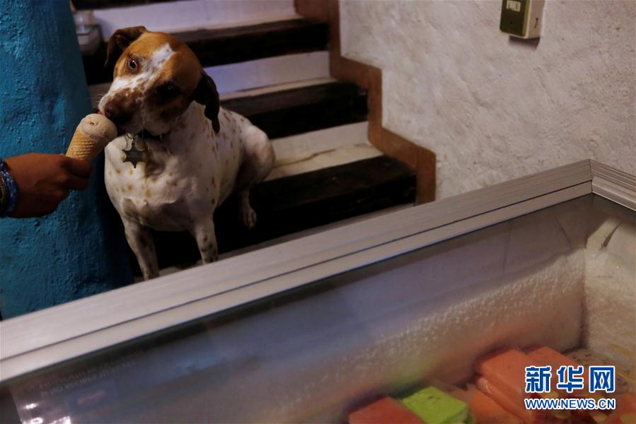 メキシコの首都?メキシコシティにはワンちゃん専用のアイスクリームショップがあり、人々から大人気だという。寫真はメキシコシティで、ワンちゃん用特製アイスを食べるイヌ(4月9日撮影)。新華網(wǎng)が伝えた。(編集YK)