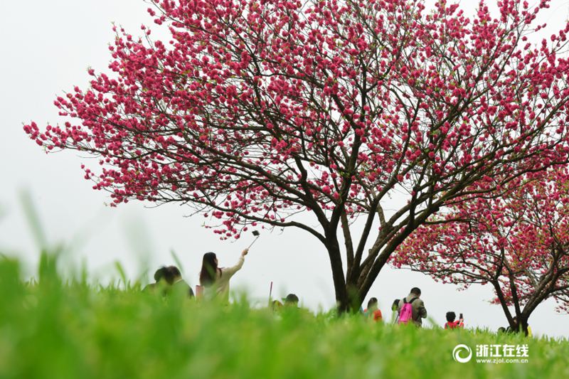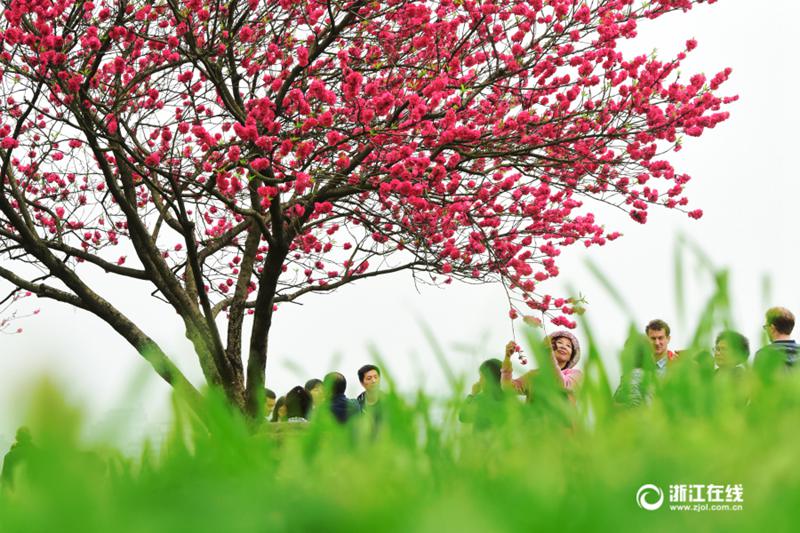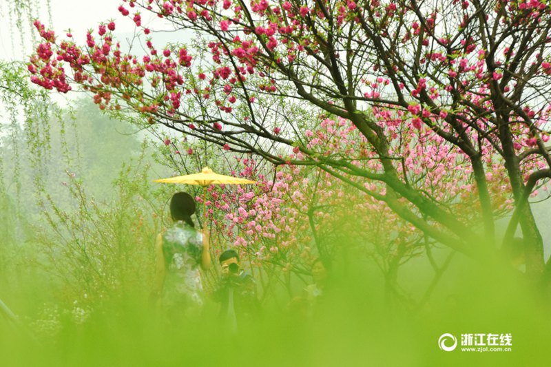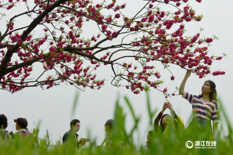 浙江省杭州市では7日、天気の移り変わりが激しく、雨も時折ぱらつく天気となったが、西湖の白堤は紅色の桃の花と、緑あざやかな柳の葉に染まっており、人々はこの花見の絶好シーズンを見逃さないようにと西湖を訪れていた。浙江在線が伝えた。(編集TK)