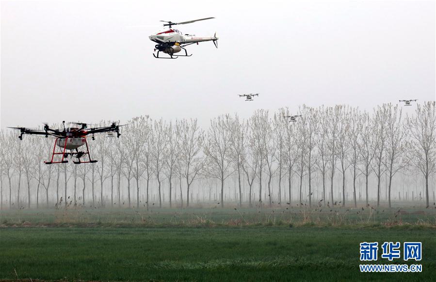 ドローンと地上農(nóng)薬散布機(jī)が10日、江蘇省灌雲(yún)県図河鎮(zhèn)で、小麥の病蟲(chóng)害予防の共同作業(yè)を行った。人民日?qǐng)?bào)が伝えた。