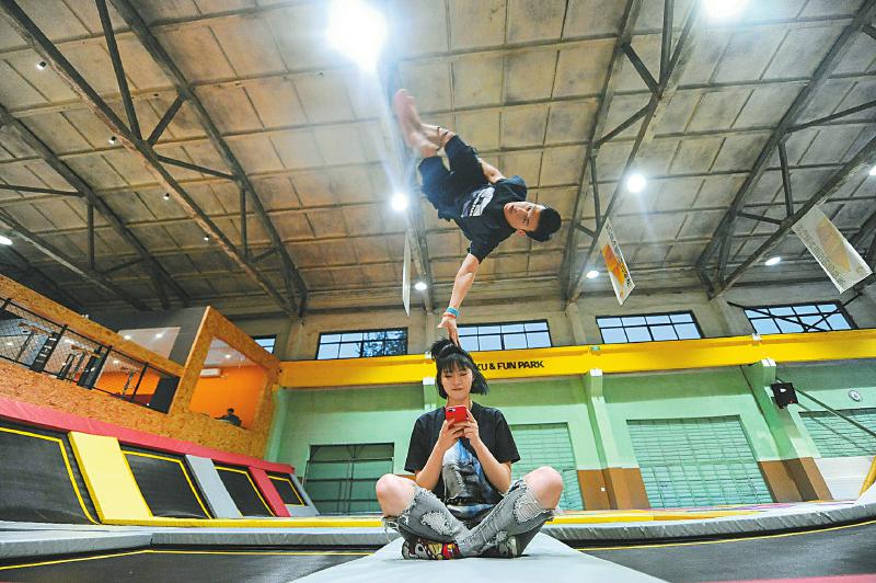 四川省成都市のある使われなくなった倉庫を改裝して作られた新型の倉庫スポーツ施設(shè)で、トランポリン好きの生徒たちがトレーナーの指導(dǎo)の下、トランポリンを楽しんでいた。參加していたある生徒は、「會(huì)社帰りに、『1メートルの高さをひとっ跳び』する快感を體感し、1日の仕事の疲れや緊張を解消する目的で通っている。こうした場(chǎng)所があるのを私たちも最近になって初めて知った」と話した。四川新聞網(wǎng)が伝えた。