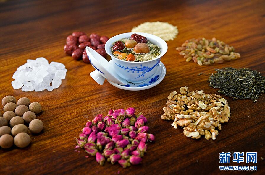 八寶茶は、茶葉や氷砂糖、赤ナツメ、クルミ、リュウガン、ゴマ、干しブドウなどをブレンドして作られる。これら各地の特産品を、古代シルクロードでは、各地から來(lái)た商人たちが物々交換し、交易品として盛んにやりとりしていた。八寶茶は最初、寧夏回族自治區(qū)呉忠市同心県の一般家庭だけで飲まれていたものだったが、今ではオリジナルブレンドされた八寶茶が工場(chǎng)で大量生産されるようになった。(編集KN)