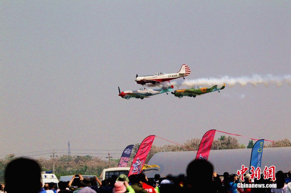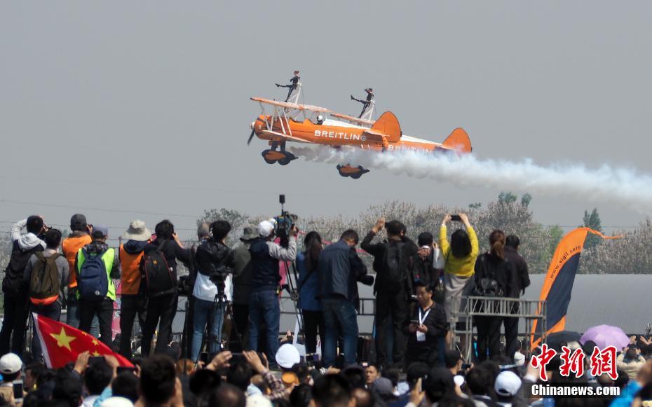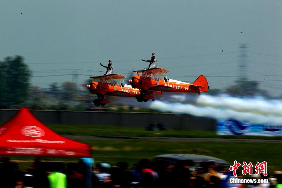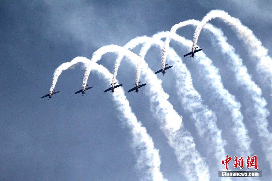 2017鄭州航空ショー開(kāi)幕 トップクラスの飛行部隊(duì)がアクロバット飛行を披露