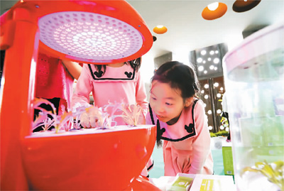 「miniスマート植物成長裝置」に目を向ける來場者