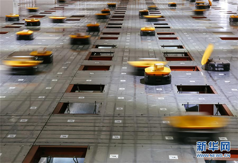 浙江省義烏市では5月3日、宅配ロボット700臺(tái)以上が倉(cāng)庫(kù)內(nèi)を行き交い、宅配大手?申通の義烏スマートロボット仕分けシステムを形成していた。これらのロボットの外見(jiàn)は掃除ロボットのようで、上部に取り外し可能なトレーがあり、これに小包を載せて運(yùn)ぶ。新華社が伝えた。
