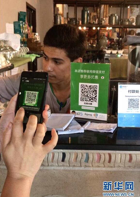 タイ?チェンマイのバーで、微信のQRコードをスキャンして支払いをしているところ。