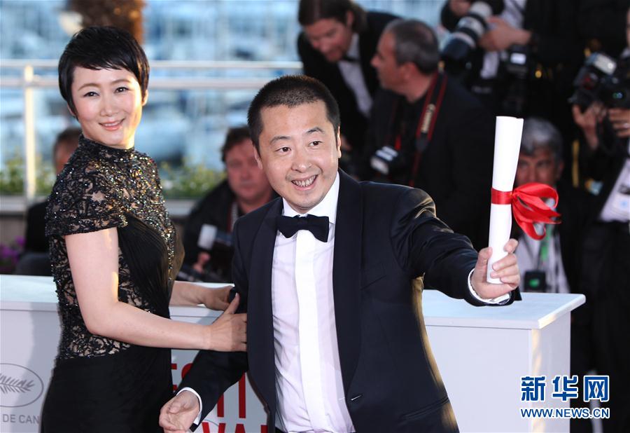 13年5月26日、第66回カンヌ國(guó)際映畫(huà)祭に出席した賈樟柯(ジャ?ジャンクー)監(jiān)督(右)と妻で女優(yōu)の趙濤(チャオ?タオ)。同映畫(huà)祭で賈樟柯監(jiān)督の「罪の手ざわり(原題:天注定)」は腳本賞を受賞した。