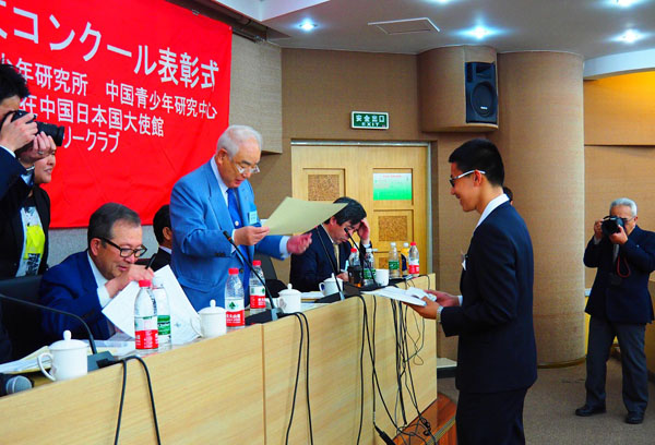 第21回目を迎える今年のコンクールにも中國(guó)各地から多くの高校生が參加しました。參加者はそれぞれ「私の夢(mèng)」、「日本語(yǔ)と私」、「私の高校生活」、「環(huán)境問(wèn)題について」などのテーマに沿って約2,000字の作文を書き上げ、投稿。その內(nèi)、一等賞を受賞した50名が北京での表彰式に出席しました。JICAボランティアである大日方春菜隊(duì)員(內(nèi)蒙古通遼市カールチン第三高校)の教え子の張曼さんと何鑫君、大瀧夕隊(duì)員(黃岡市外國(guó)語(yǔ)學(xué)校)の教え子の方迪さんも見(jiàn)事一等賞を受賞し、栄譽(yù)ある表彰式に參加するために遠(yuǎn)路はるばる北京までやって來(lái)ました。